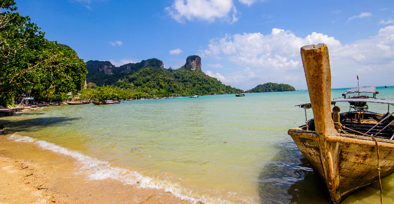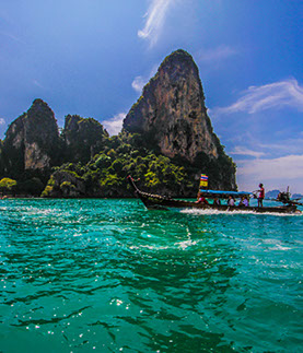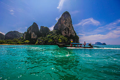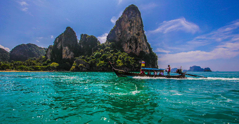 Long tail heading back to Krabi from Ao Nang, Thailand.